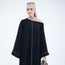 عباية تتميز بقصة انسيابية و مزودة بقيطان دهبي لامع (سواريه) بجودة عالية بطول العباية و كذلك الأكمام يكون عليها بشكل دائري من الأمام و مزودة بسوستة سحرية بنفس لون العباية من الخلف لسهولة اللبس . عباية تجعلك اكثر تميزا. مما يجعلها مثالية لإطلالة المناسبات.